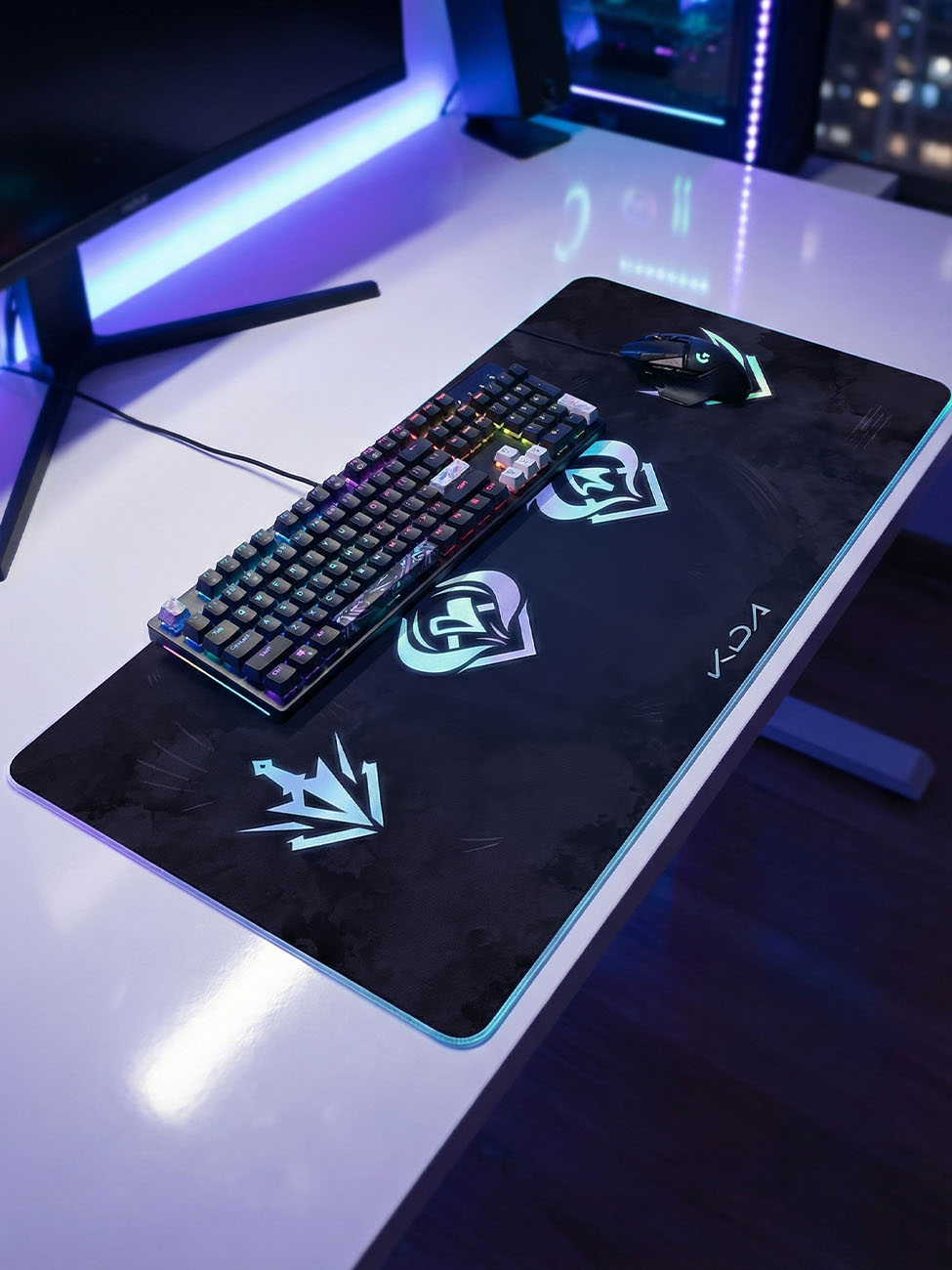 Et si vous pouviez ressentir la puissance d'Ahri sur votre bureau ? Ce support allie l'esthétique néon de KDA à des performances techniques indispensables pour vos sessions intenses. Les graphismes haute définition affichent les logos stylisés sur un fond nocturne élégant.