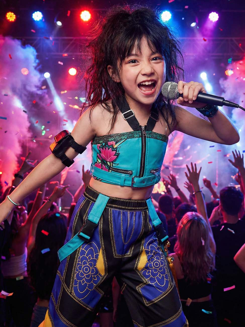 Ce cosplay transforme chaque anniversaire thématique, spectacle scolaire ou Halloween en opportunité d'incarner cette rappeuse pétillante qui prouve qu'être la plus jeune n'empêche pas d'avoir la présence scénique la plus explosive.