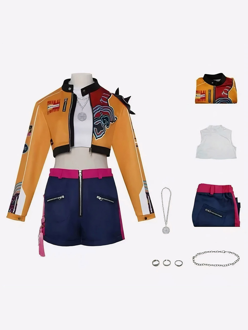 Le crop top blanc inclus complète l'ensemble pour une silhouette fidèle au personnage. Parfait pour les conventions, Halloween, les anniversaires thématiques ou simplement affirmer une passion pour l'univers KPop Demon Hunters.