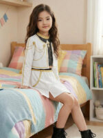 Ce costume capture l'esprit vibrant de Zoey, la plus jeune membre des Huntrix dont l'énergie débordante cache une force insoupçonnée. Les accents dorés qui illuminent le haut et la jupe rappellent sa participation au Golden Honmoon, ce moment où elle a prouvé que même la plus jeune pouvait participer à sauver le monde.