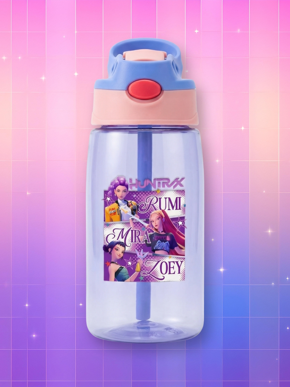 Cette gourde transparente de 480ml exploite intelligemment l'engouement de votre enfant pour le film phรฉnomรจne de Netflix. Les trois chasseuses Huntrix imprimรฉes en haute qualitรฉ captent son attention et crรฉent cette motivation visuelle qui transforme "bois de l'eau" en un moment de plaisir.