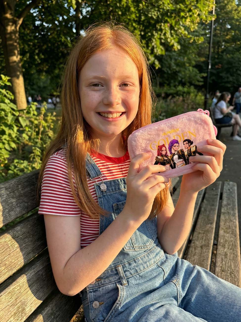 Les uniformes noirs avec รฉpaulettes dorรฉes proviennent de la performance "Golden", le tube musical qui explose dans le film et cartonne dans la vraie vie. Cette chanson iconique accompagne les moments clรฉs oรน les trois chasseuses assument pleinement leur double identitรฉ d'idoles et de guerriรจres.