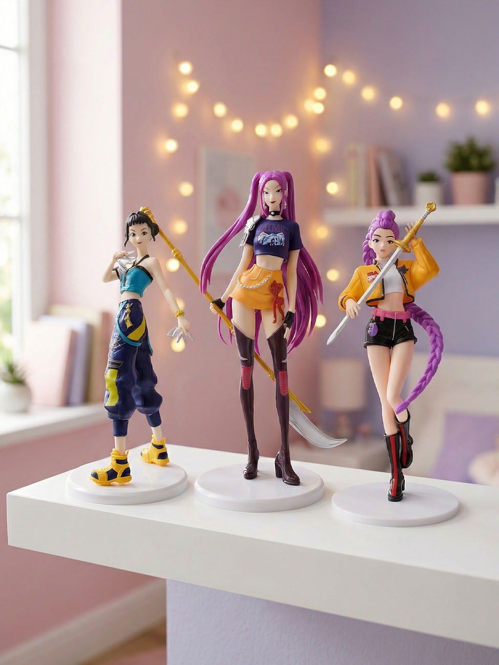 Imaginez votre enfant plongรฉe dans l'univers envoรปtant des Huntrix grรขce ร ces trois figurines fidรจles au design du film. Chaque personnage porte sa tenue emblรฉmatique du quotidien, capturant l'essence mรชme de l'esthรฉtique K-pop qui fascine tant les jeunes fans.