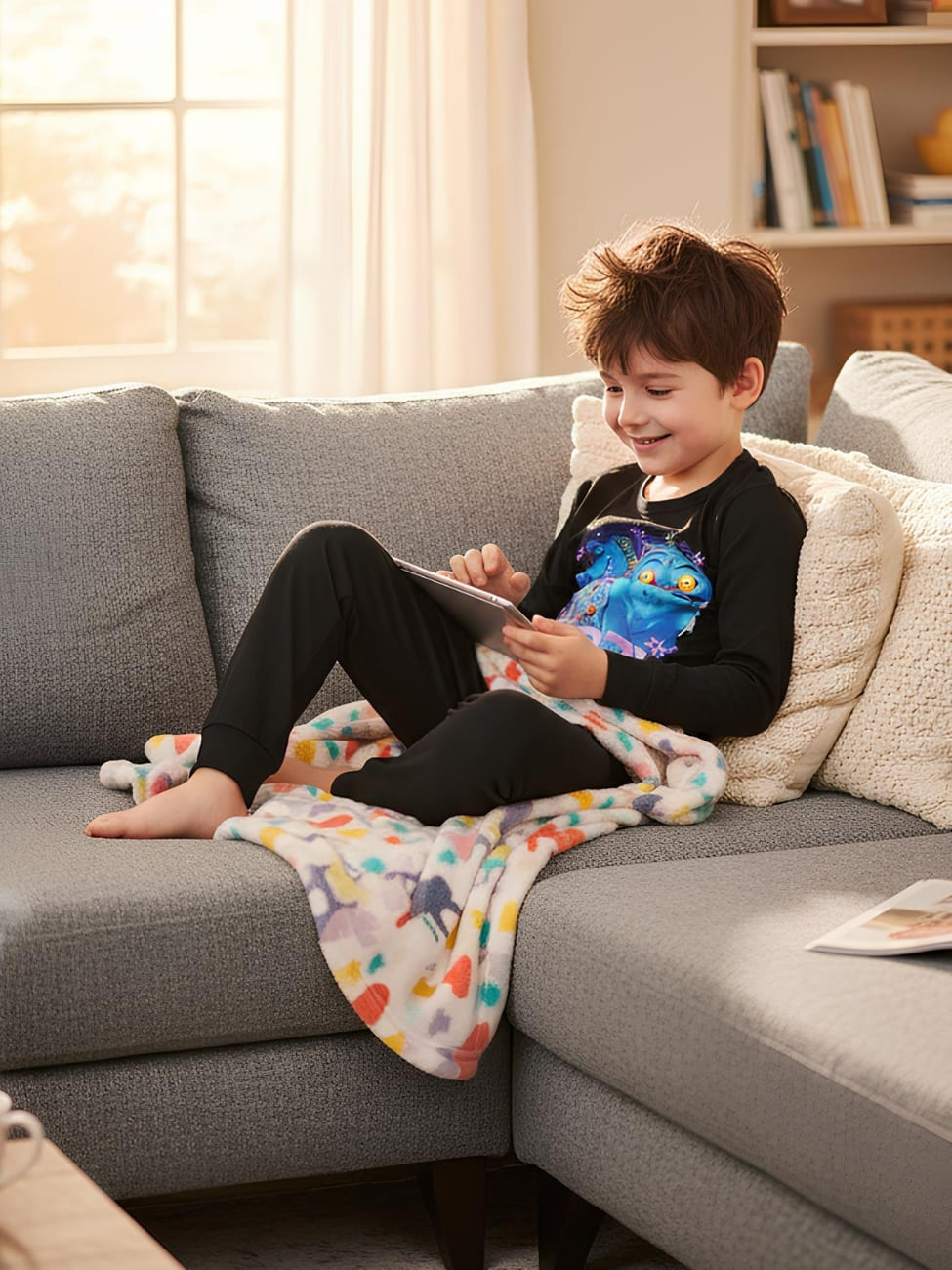 Ce pyjama Kpop Demon Hunters motif Derpy a été conçu comme un modèle mixte, parfaitement adapté aux filles comme aux garçons. Disponible en plusieurs coloris (noir, bleu, rose, violet…), il permet à chaque enfant de choisir la version qui lui ressemble.