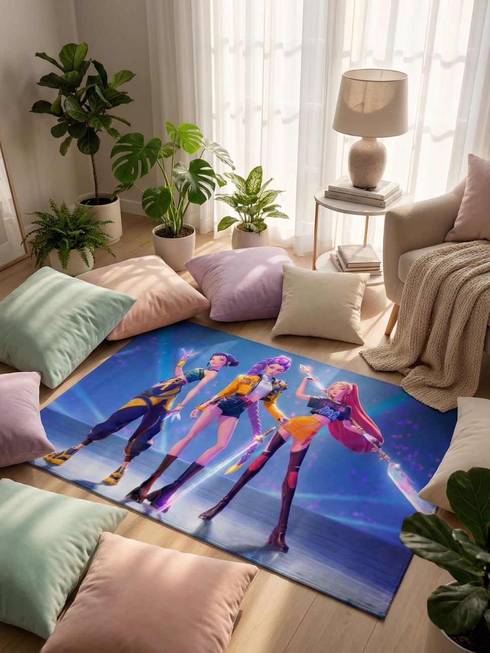 Imaginez votre fille s'éveiller chaque matin entourée de ses idoles du groupe Huntrix. Ce tapis capture l'éclat du film Netflix, mettant en scène Rumi, Mira et Zoey. Bien plus qu'un simple objet décoratif, il devient un portail magique vers un monde de courage.