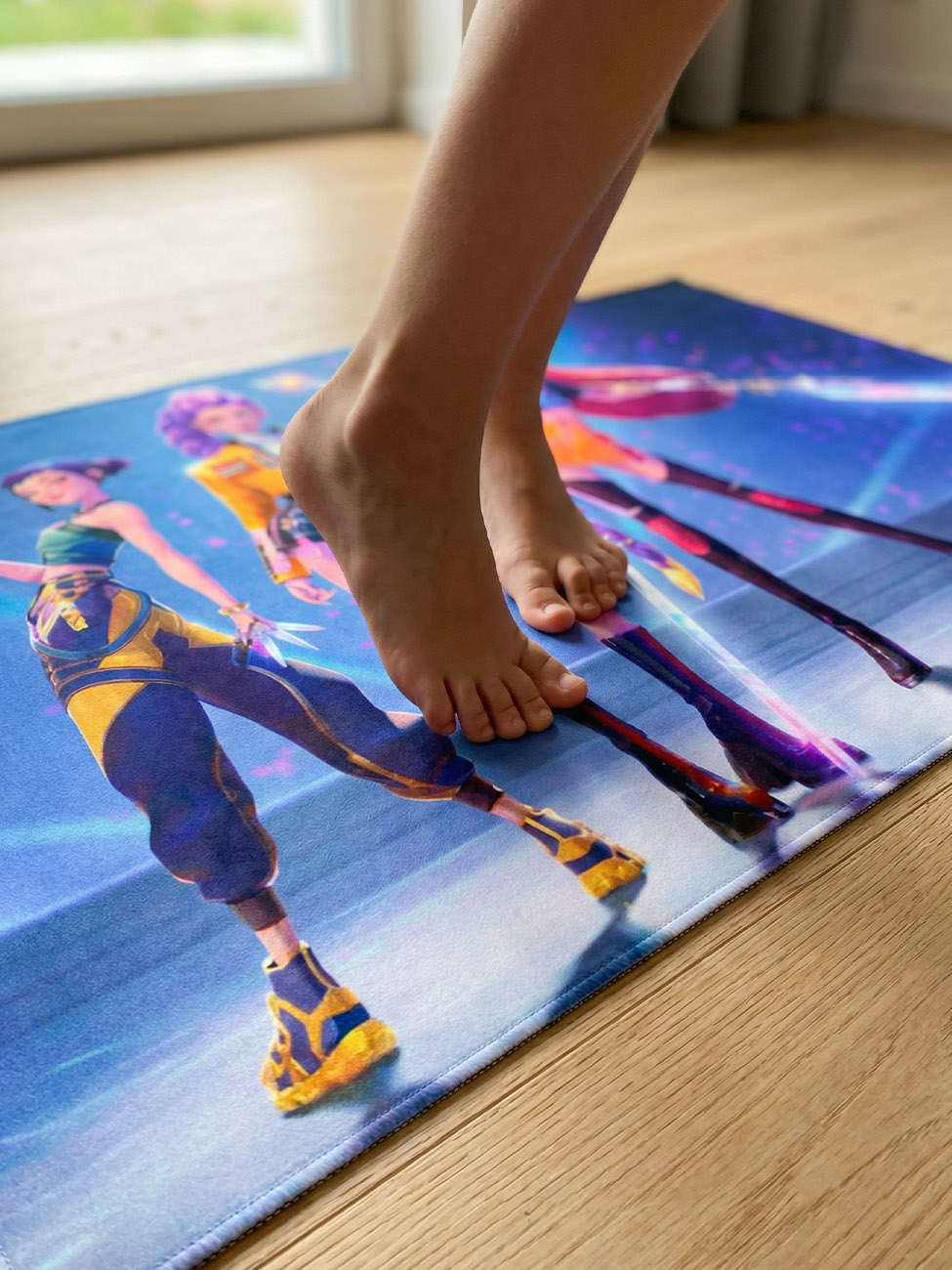 Conçu avec une flanelle de polyester de haute qualité, ce tapis offre une texture douce, idéale pour ses moments de détente. Sa base antidérapante assure une stabilité parfaite sur tous les sols, garantissant la sécurité de votre enfant lors de ses chorégraphies.