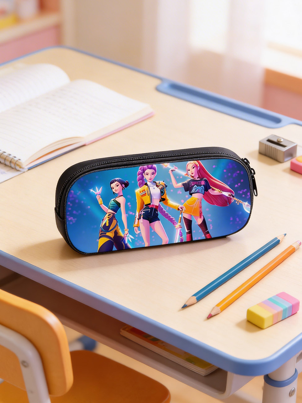 Cette trousse Kpop Demon Hunters offre bien plus quโun simple rangement : elle permet ร votre enfant de sโidentifier ร trois hรฉroรฏnes fortes, modernes et inspirantes. En voyant ces personnages chaque jour, elle ressent un รฉlan de motivation qui transforme lโorganisation scolaire en moment agrรฉable.