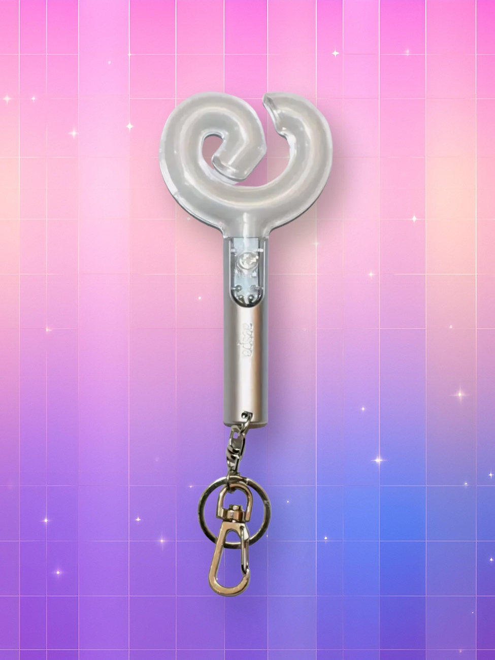 Ce mini lightstick adopte une silhouette originale à l'image du logo de la formation, rompant avec les designs traditionnels pour affirmer une identité visuelle distinctive. Le dôme translucide épouse les courbes iconiques du logo Aespa, créant un objet immédiatement reconnaissable qui attire l'attention dès le premier coup d'œil.
