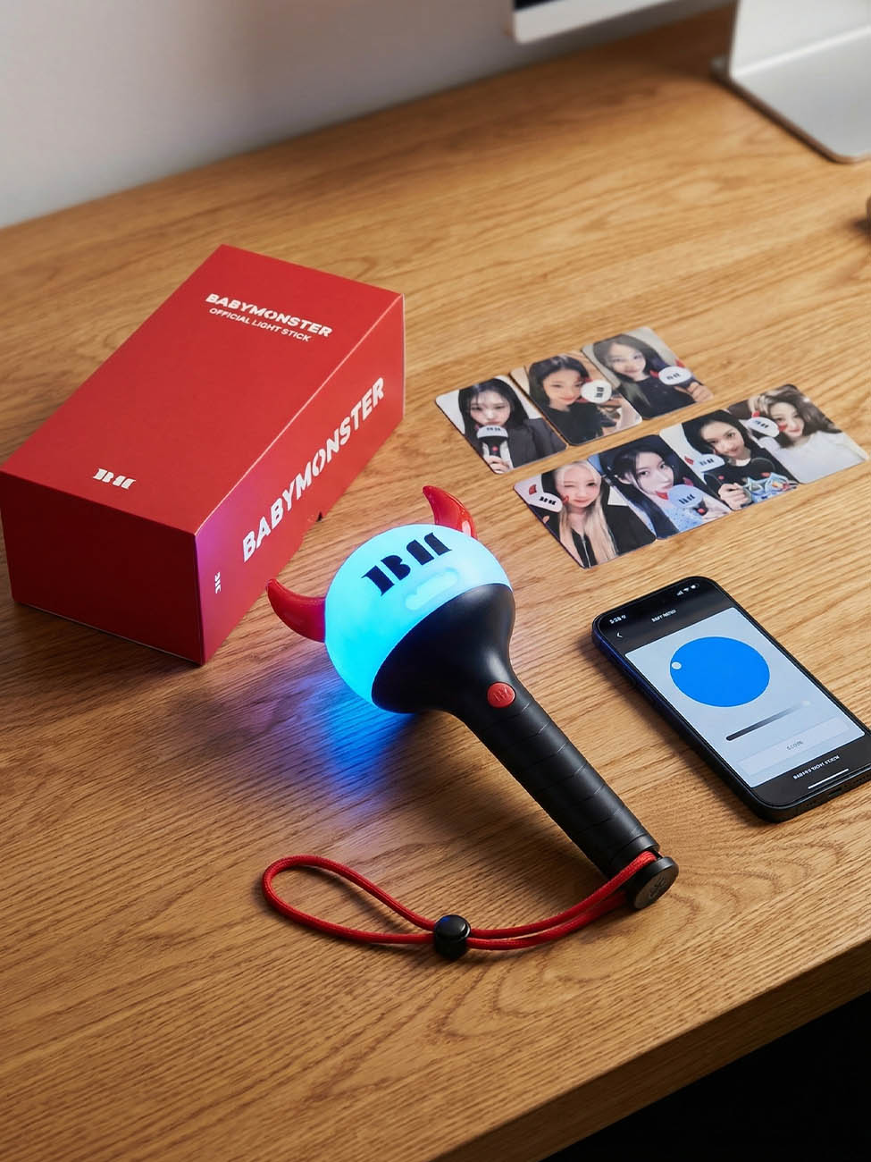 Le design iconique capture ร merveille la dualitรฉ baby-monster du groupe : une adorable tรชte de crรฉature aux cornes rouges qui s'illumine de mille feux. Chaque dรฉtail, des petites dents visibles ร la forme arrondie, reflรจte cette innocence fรฉroce qui fait battre le cลur des MONSTIEZ.