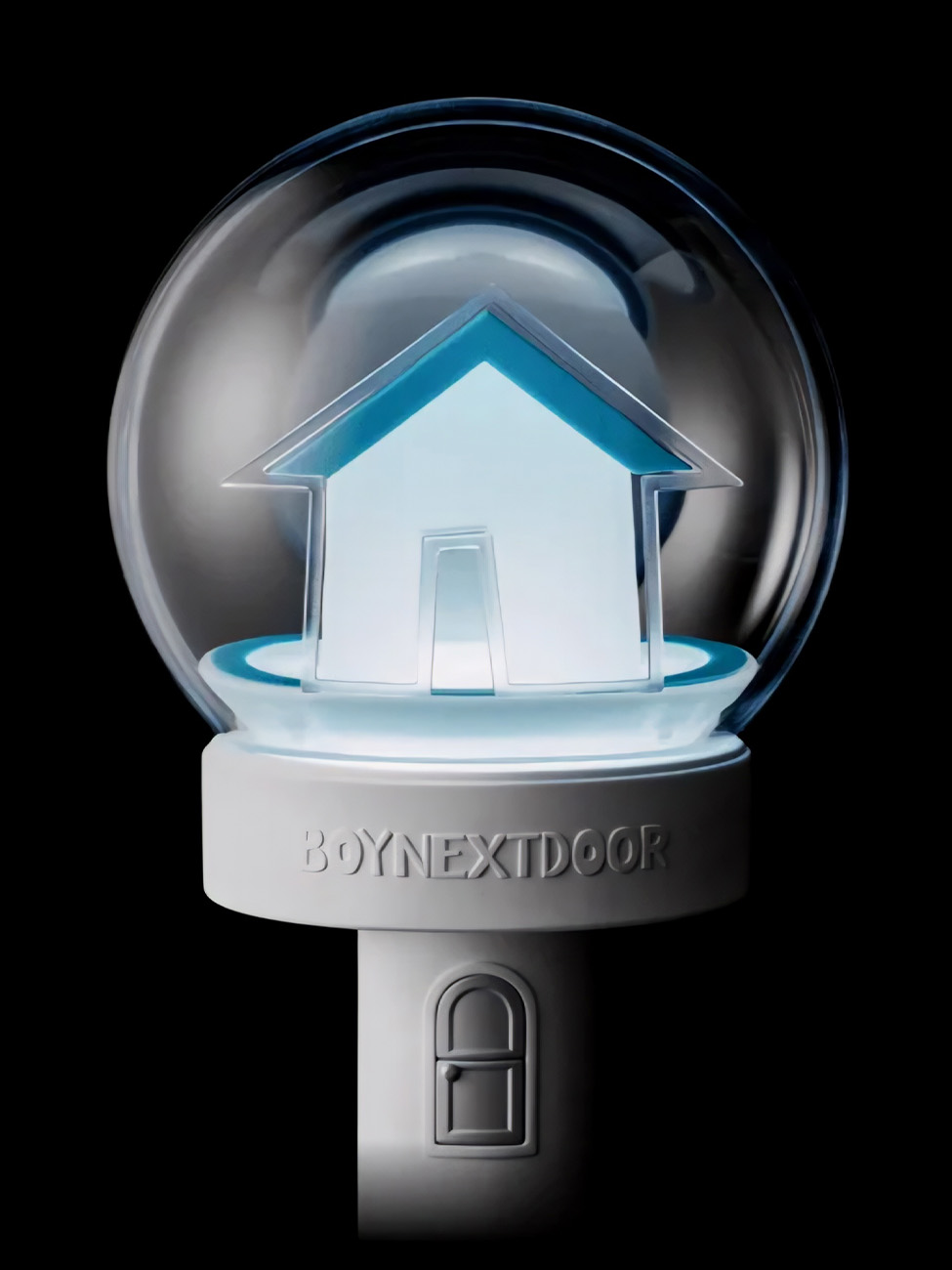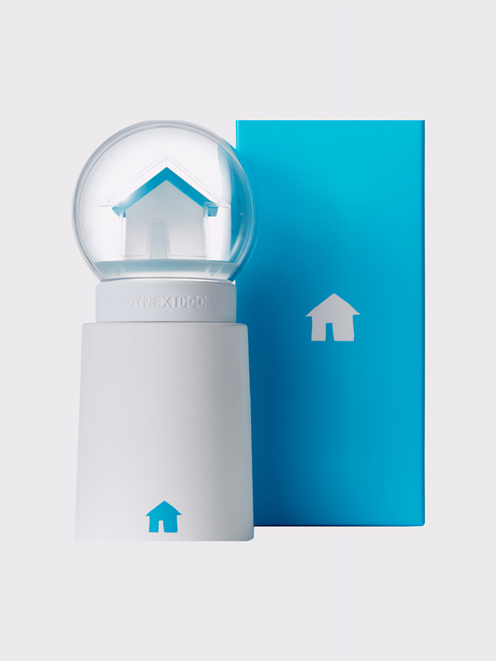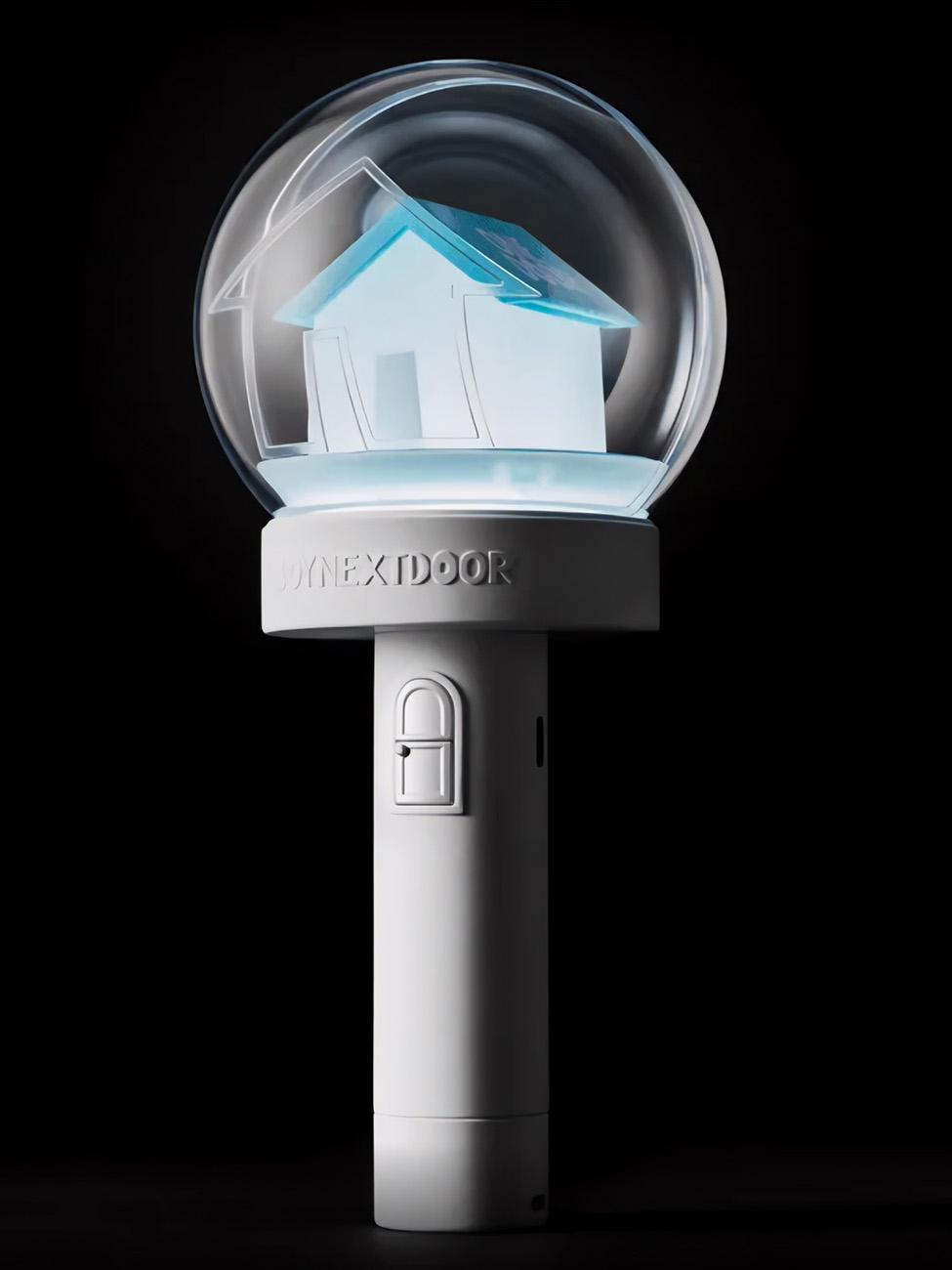 Ce lightstick capture l'essence mรชme du concept "Boy Next Door" : accessible, chaleureux, et authentique. Sa forme de maison en blanc immaculรฉ et bleu ciel reproduit fidรจlement le symbole du groupe, cette porte unique qui relie les fans au monde de leurs idoles.