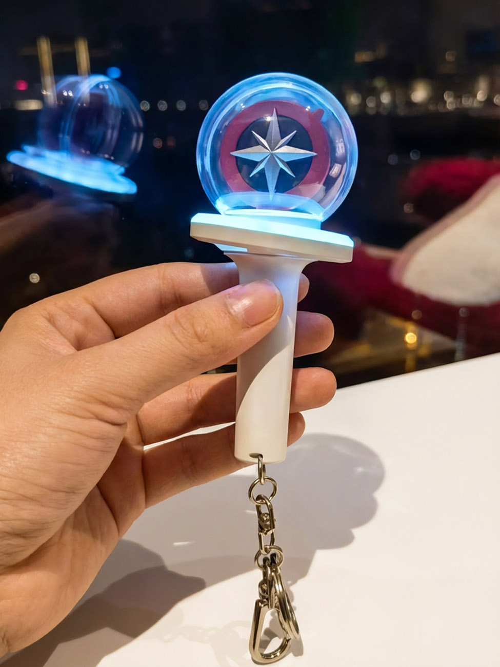 Contrairement au lightstick concert, cette version privilégie la simplicité : pas de bluetooth, pas de synchronisation complexe, juste une activation instantanée qui transforme vos clés en déclaration silencieuse d'appartenance dans un format compact et fidèle.