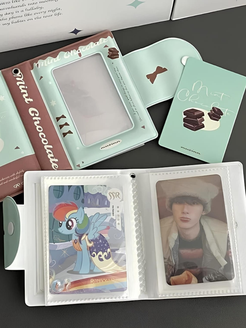 Ce photocard folder Mint Chocolate transforme le rangement en vรฉritable moment de plaisir. Son format est parfaitement adaptรฉ aux photocards K-pop standards, sans perte dโespace. Vous pouvez organiser vos cartes par groupe, par album, par concept ou simplement selon vos coups de cลur.