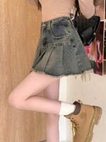 Mini-jupe plissée en denim délavé Y2K