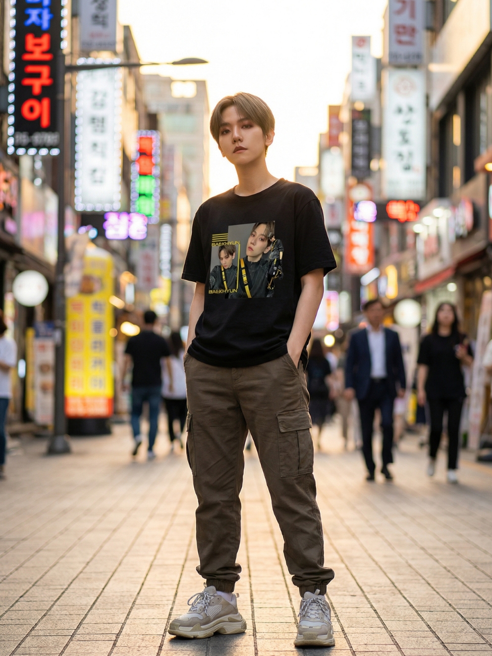 Imaginez-vous porter l'aura de Baekhyun, le membre incarnant la force lumineuse du groupe. Ce T-shirt exclusif capture l'essence mystique du lore d'EXO tout en restant une piรจce de mode moderne.