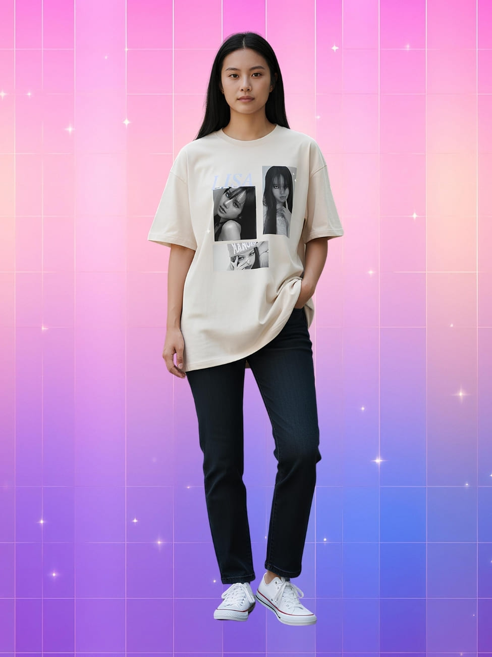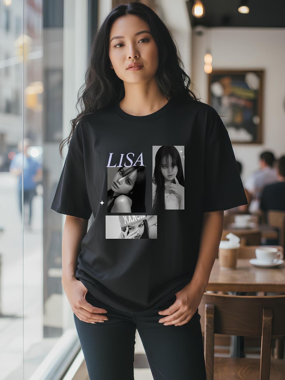 Lisa ne se suit pas, elle s’admire. Icône mondiale de la K-pop, elle incarne la puissance, l’audace et une liberté de style qui dépasse les tendances. Ce t-shirt capture cette énergie unique à travers un visuel fort, expressif et immédiatement reconnaissable.