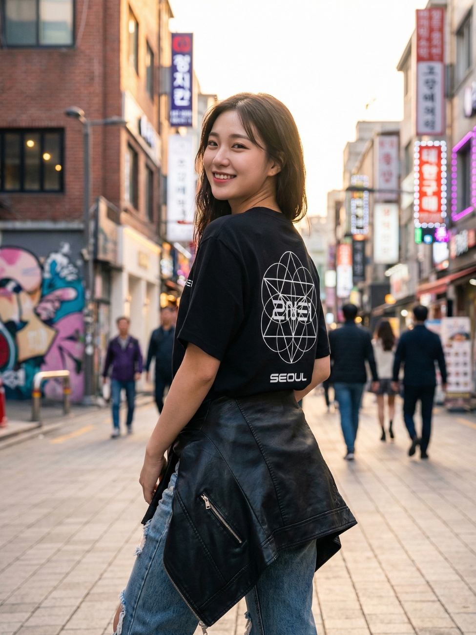 Ce n'est pas qu'un simple vêtement, c'est une déclaration d'appartenance à une communauté qui célèbre l'empowerment et l'individualité. Le noir profond s'associe avec tout tout en mettant en valeur le design qui fait référence à Seoul, berceau de la vague qui a conquis le monde.