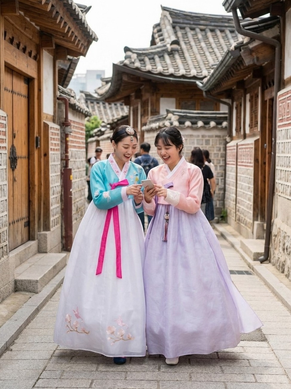 Que ce soit pour une fête familiale, une séance photo ou une promenade à Bukchon, cette tenue s’adapte sans jamais se dénaturer. On n’imite pas le passé, on le prolonge avec élégance.
