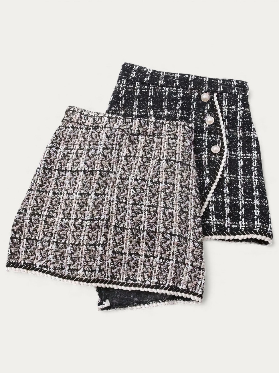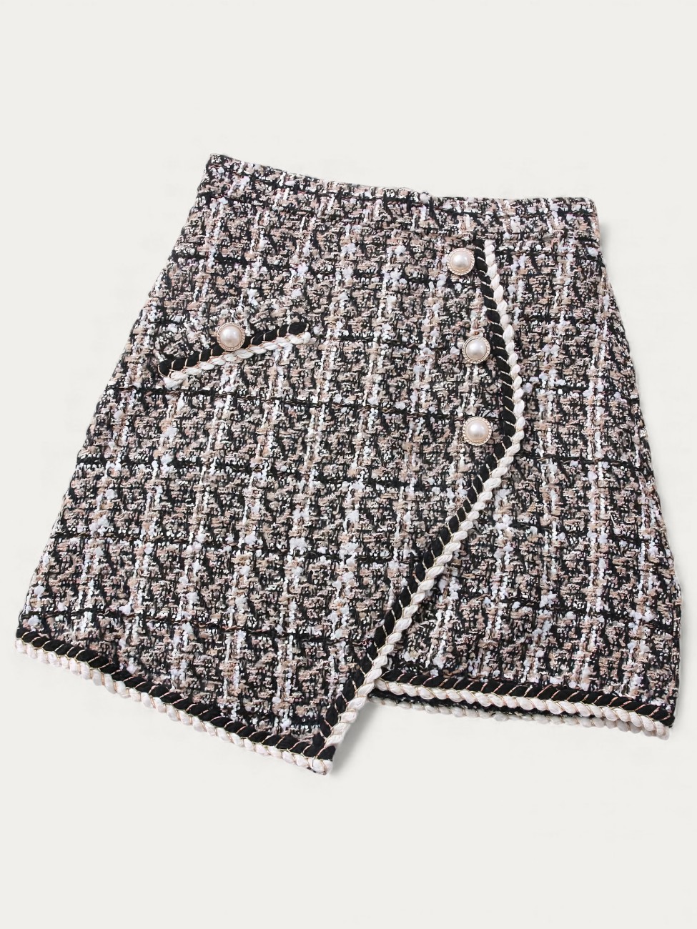Jupe tweed coréenne perlée chic effet portefeuille