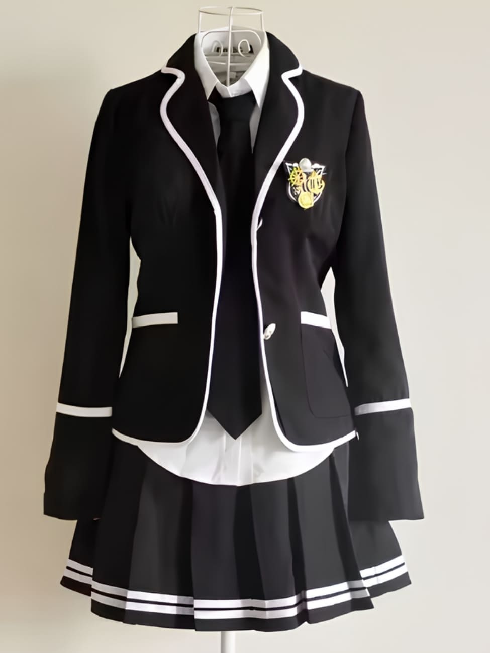 Uniforme coréen pour fille avec jupe plissée et veste noire